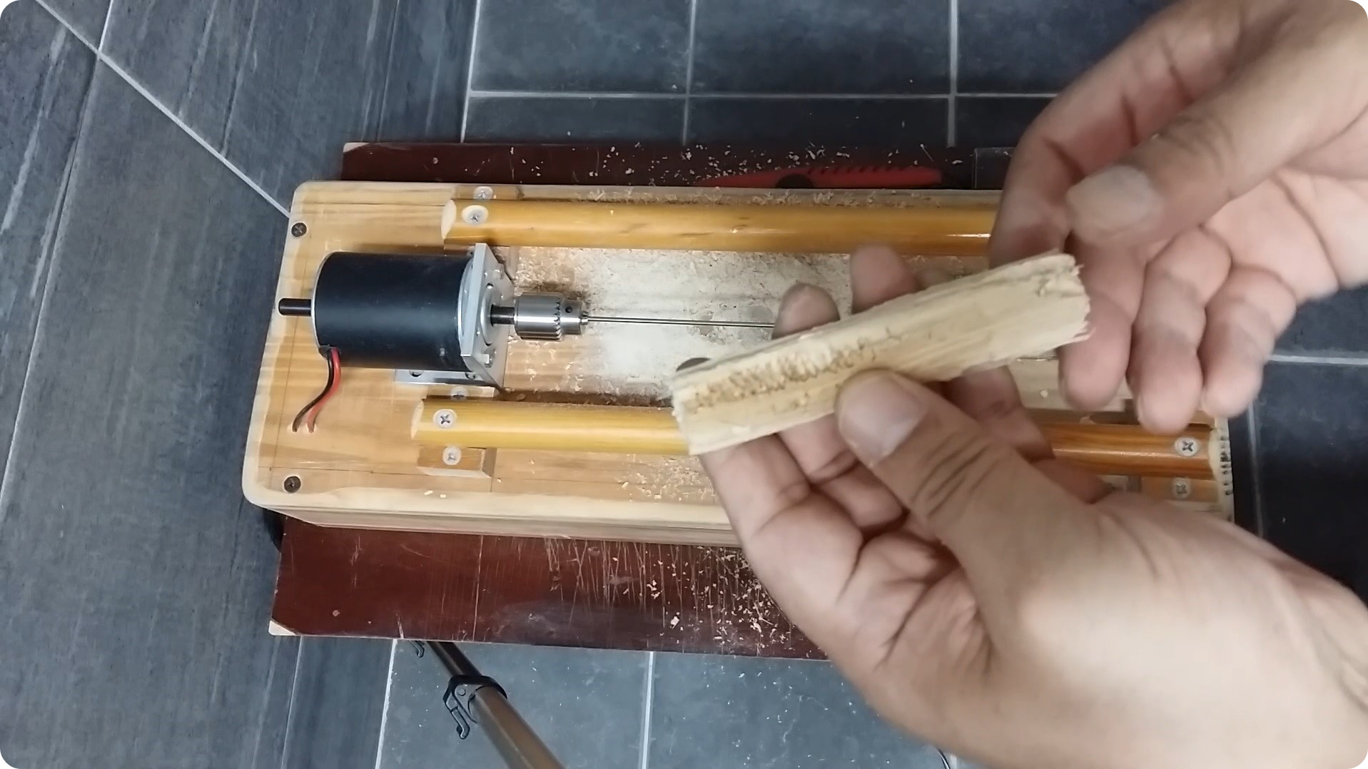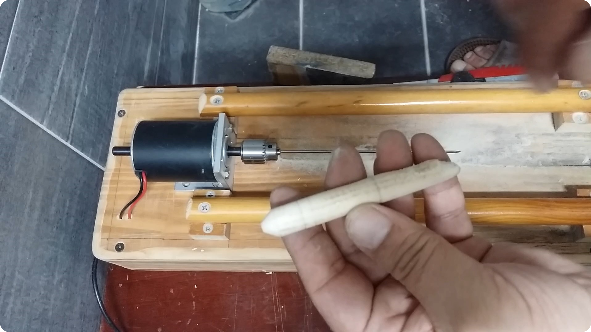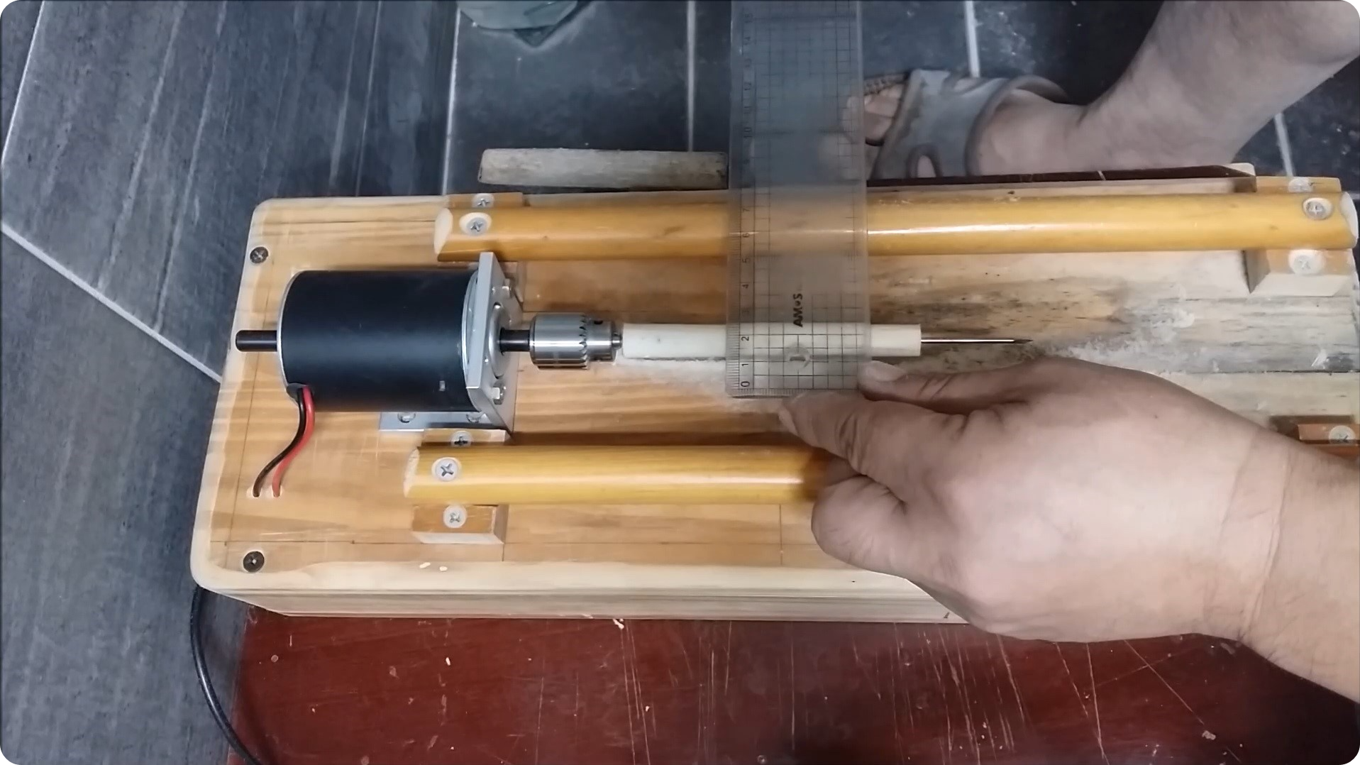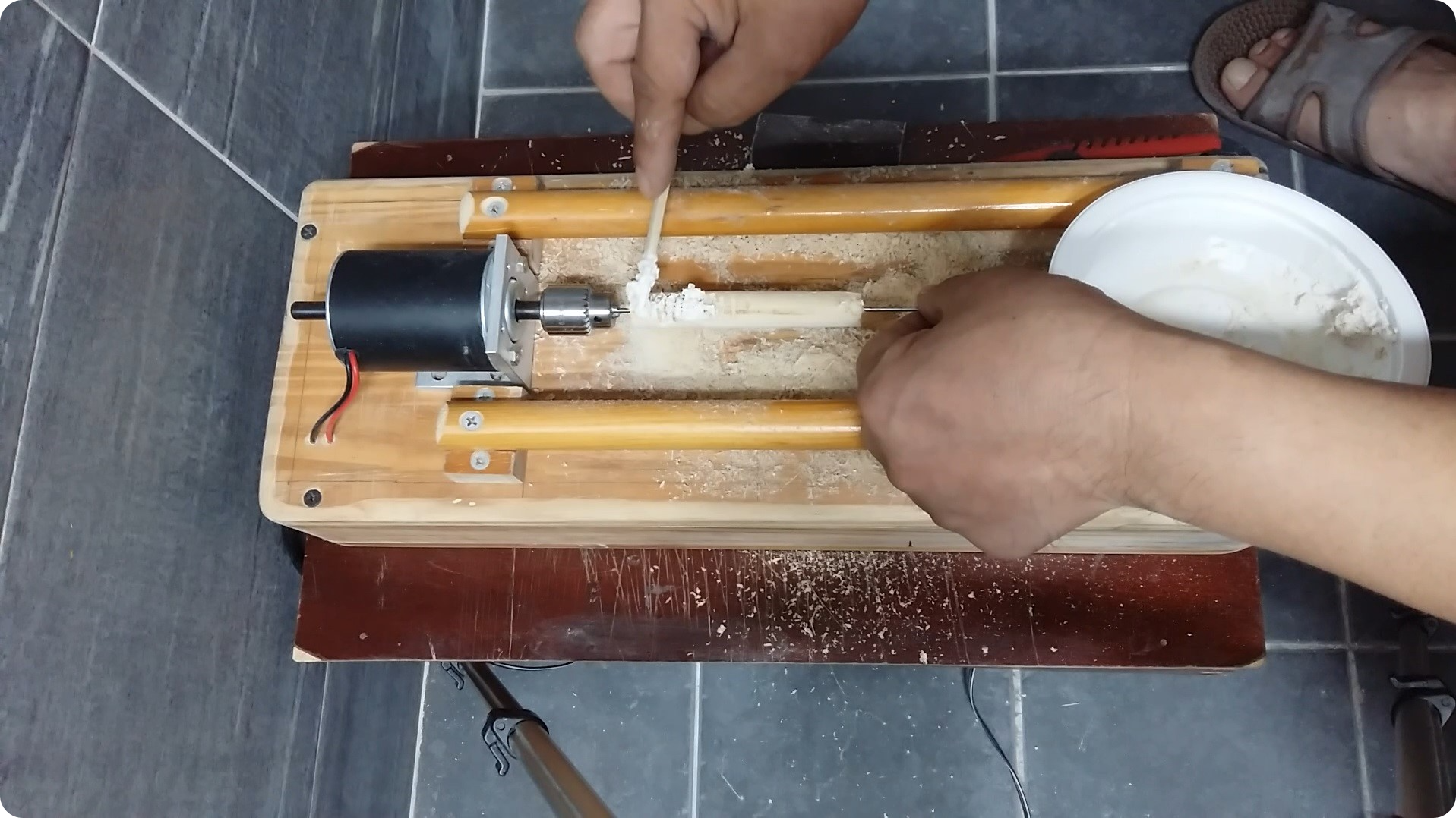 몸통 두께를 재어봅니다. 이전에 12미리정도로 깎으면 제가 사용할 최적의 부력이 나온다는 것을 알았으니까요.