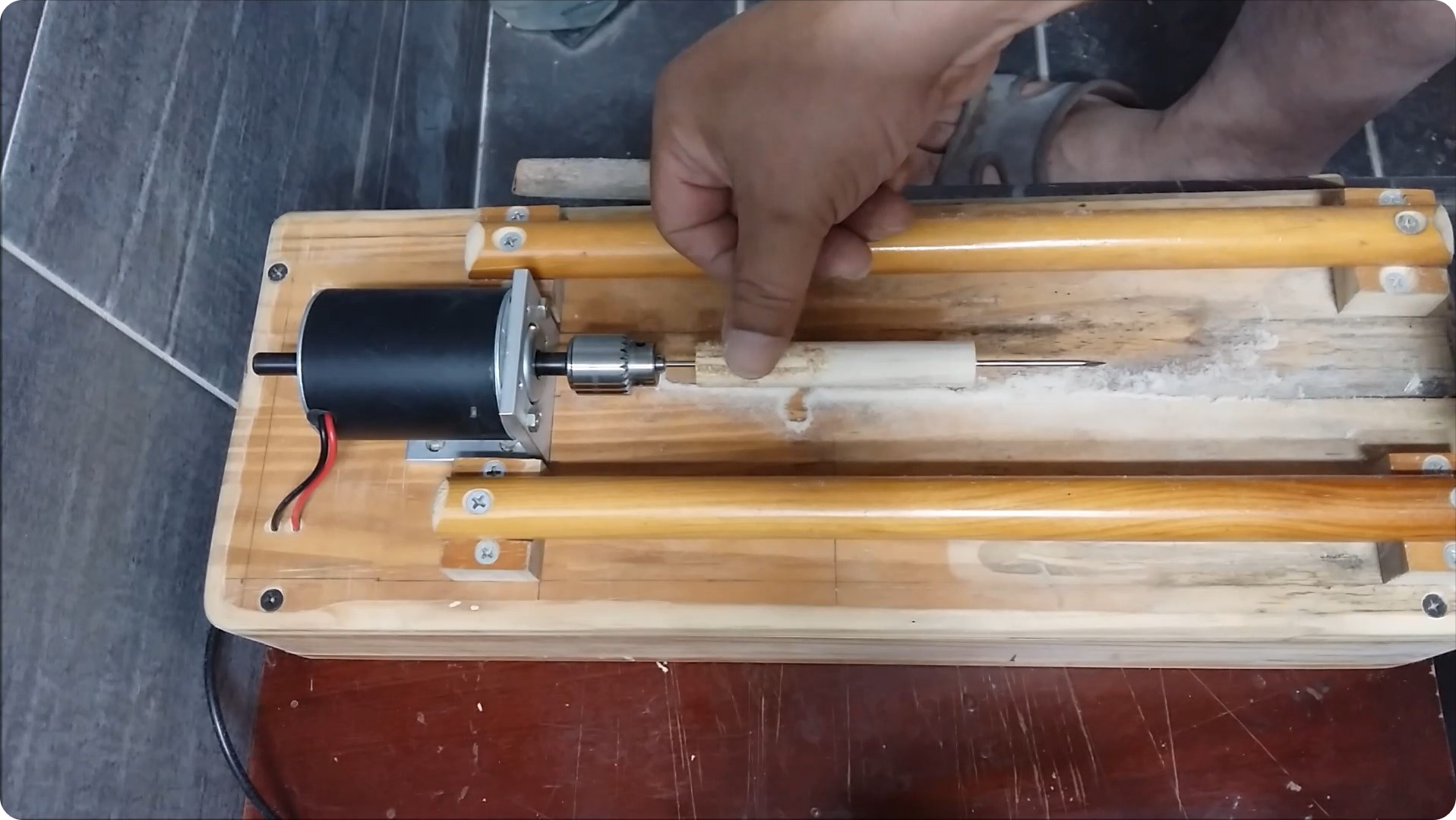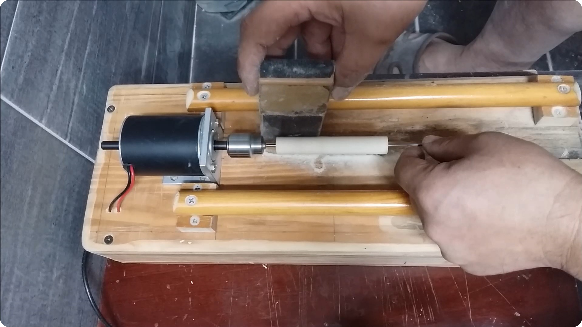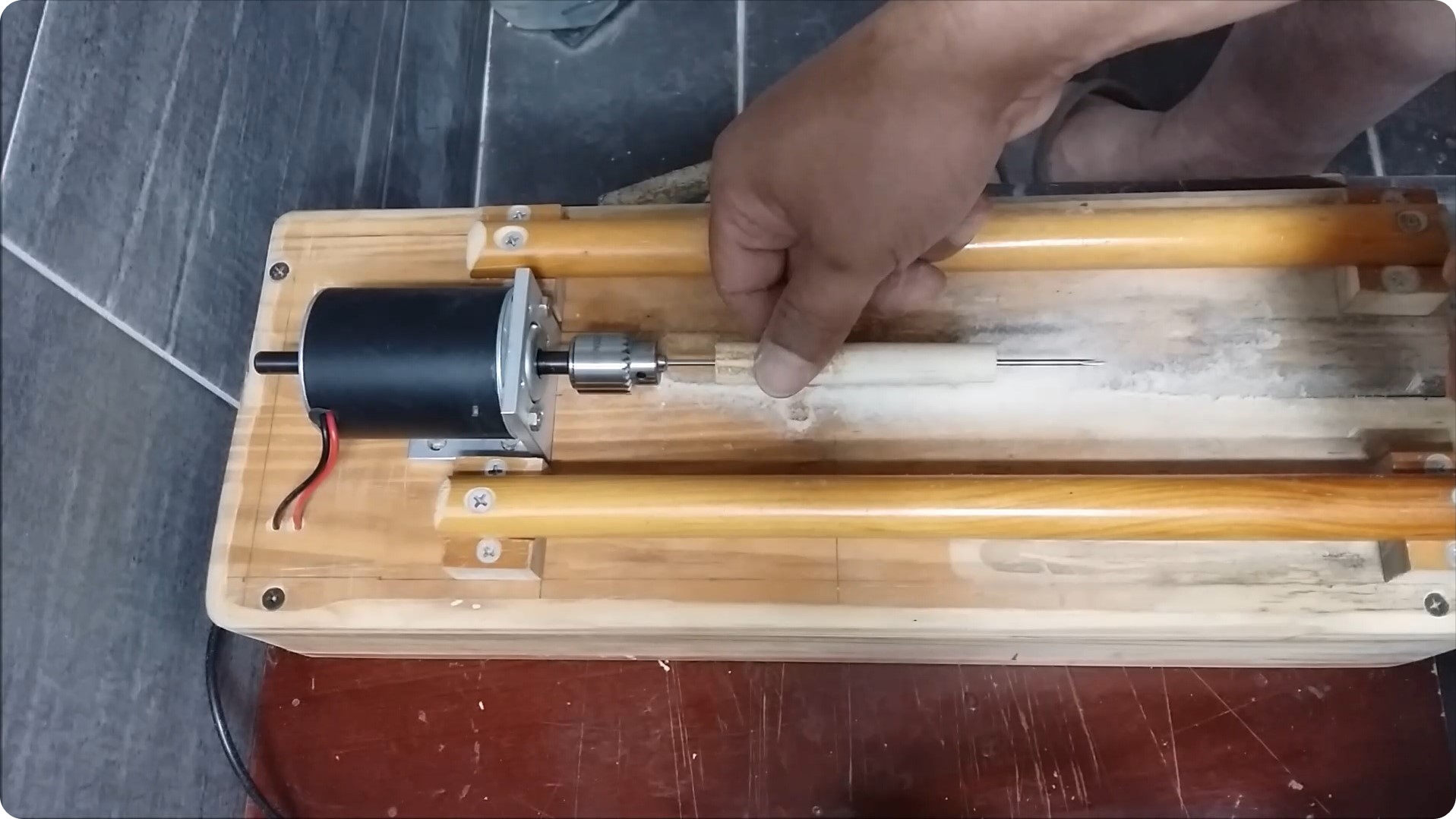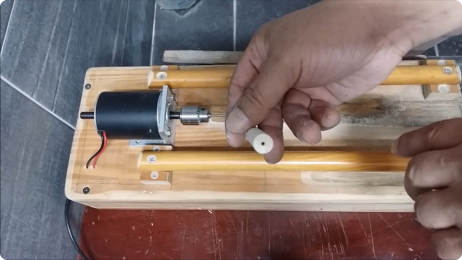 몸통 두께를 재어봅니다. 이전에 12미리정도로 깎으면 제가 사용할 최적의 부력이 나온다는 것을 알았으니까요.